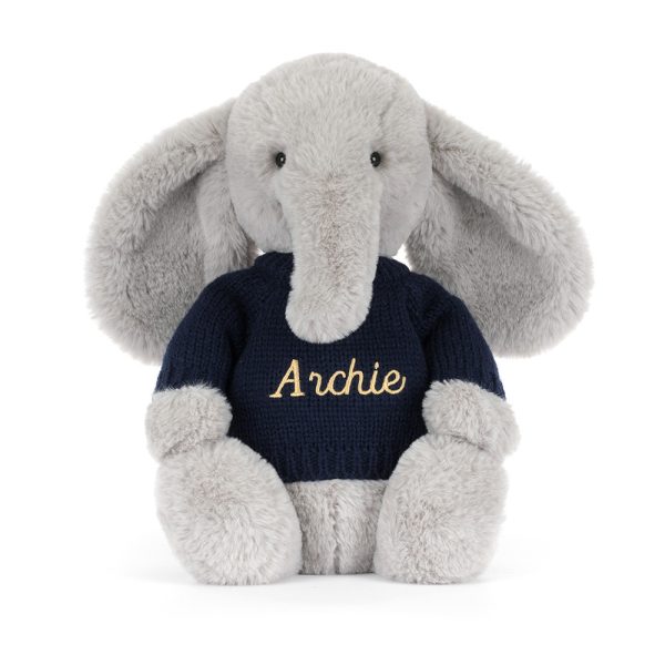 Bashful Luxe Elephant Thuddeus with Personalized Navy Jumper